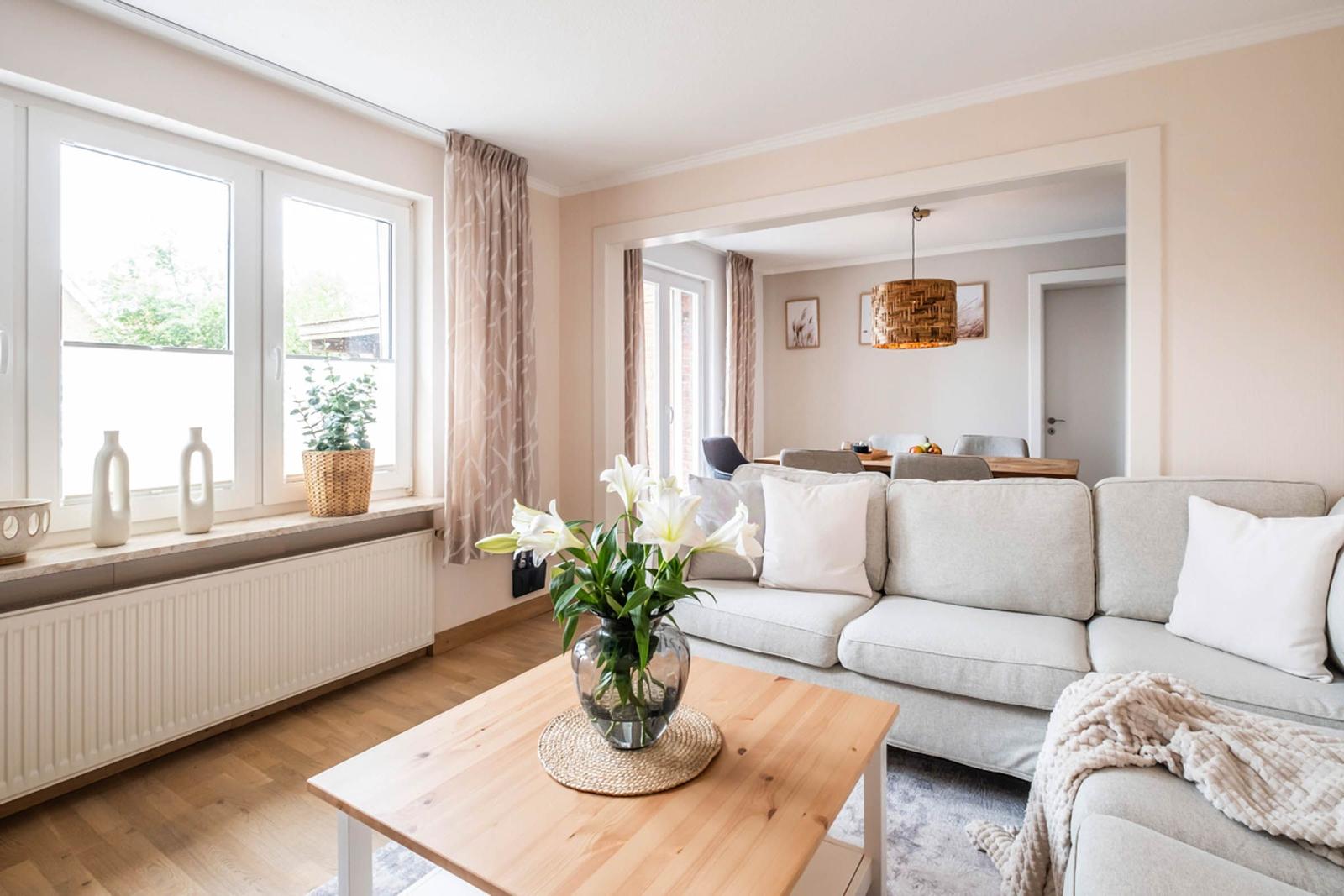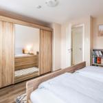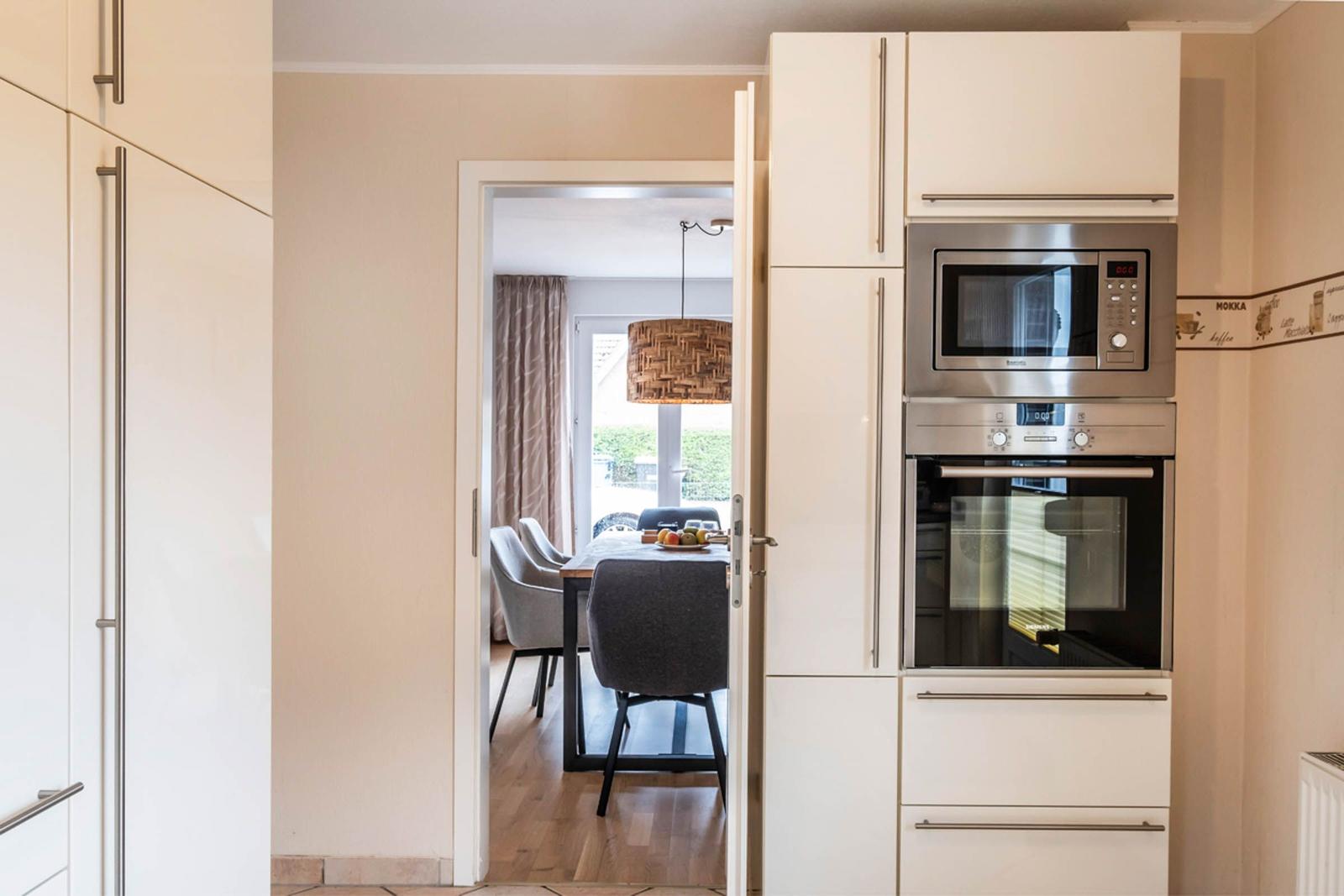 Die Ferienwohnung bietet eine großzügige und allergikergeeignete Unterkunft, ideal für Familien oder Gruppen. Sie verfügt über drei einladende Schlafzimmer, darunter zwei mit Doppelbetten sowie ein Einzelzimmer. Die separate Küche ist modern ausgestattet mit einem Elektro- und Gasherd, Backofen, Geschirrspüler, Kühlschrank, Kaffeemaschine, Toaster und Gefriermöglichkeit, was das Kochen zu einem Vergnügen macht.