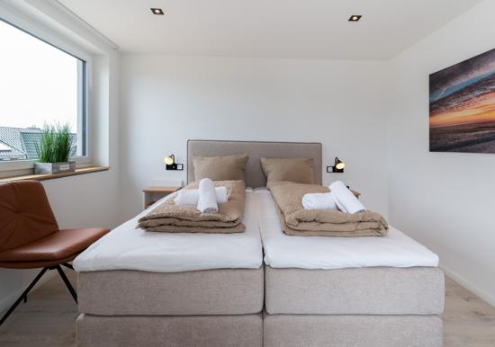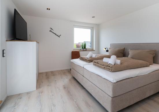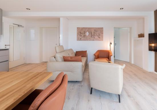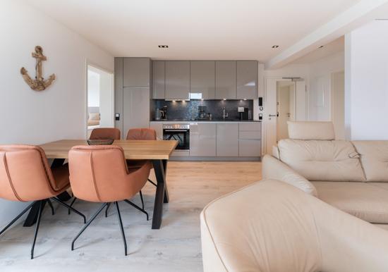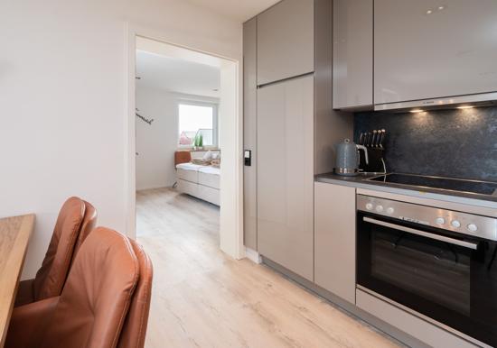 Die Ferienwohnung bietet eine komfortable und allergikergeeignete Unterkunft, die ideal für entspannte Urlaubstage ist. Mit zwei geschmackvoll eingerichteten Schlafzimmern, ausgestattet mit jeweils einem Doppelbett, sowie einem Wohnschlafzimmer mit Schlafcouch, bietet sie Platz für bis zu sechs Personen. Die offene Küche ist modern und funktional gestaltet und verfügt über einen Elektro-/Gasherd, Backofen, Geschirrspüler, Kühlschrank sowie eine Kaffeemaschine und Espressomaschine. Das Badezimmer mit bodengleicher Dusche und Fenster sorgt für zusätzlichen Komfort. Zur Ausstattung gehören zudem WLAN, TV, Fußbodenheizung, Haartrockner und zahlreiche Küchenutensilien. Ein Parkplatz ist ebenfalls vorhanden. Der Fahrstuhl erleichtert den Zugang zur Wohnung, die durch Geräumigkeit und durchdachte Details überzeugt. Hier findet jeder Gast das ideale Ambiente für erholsame Stunden.