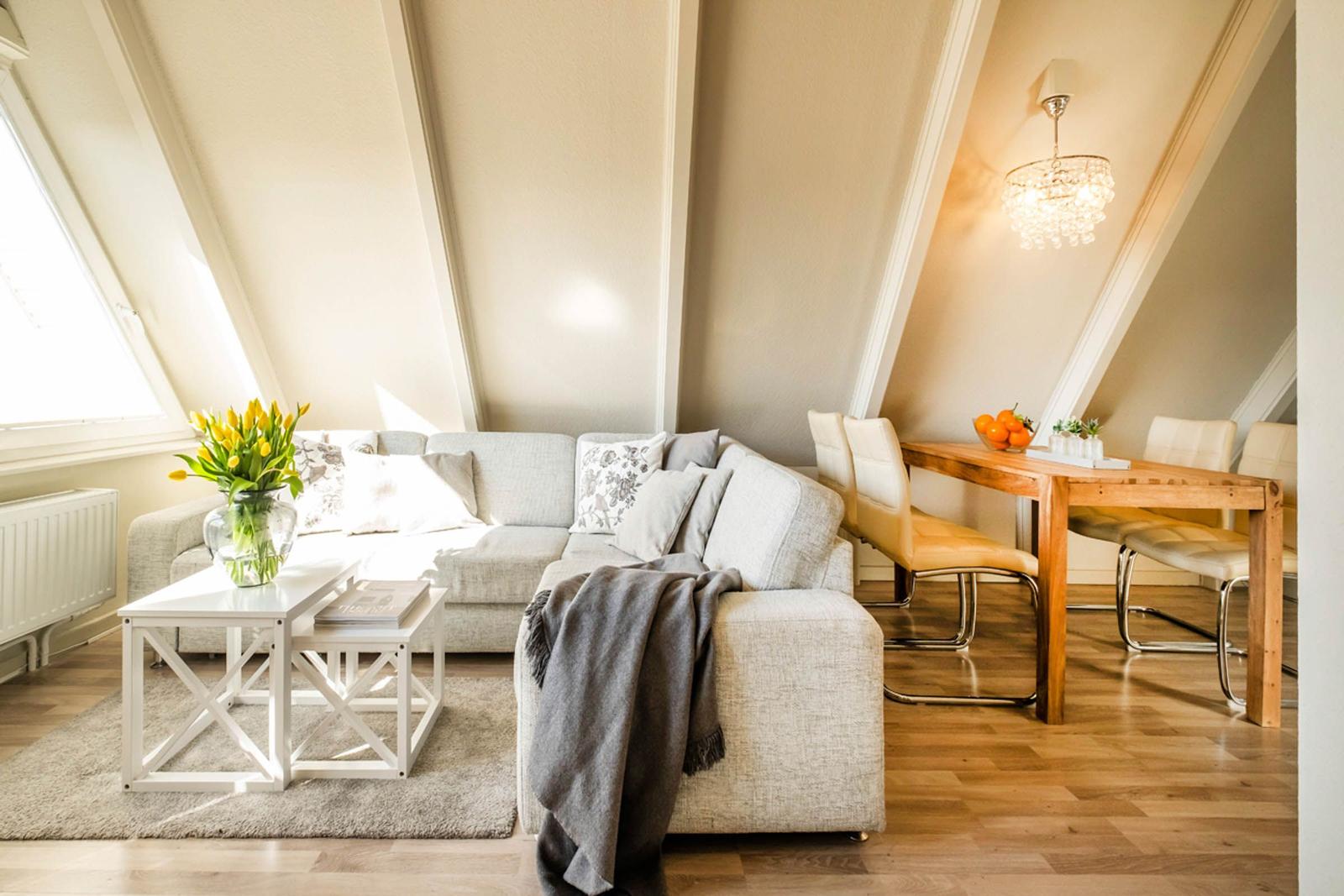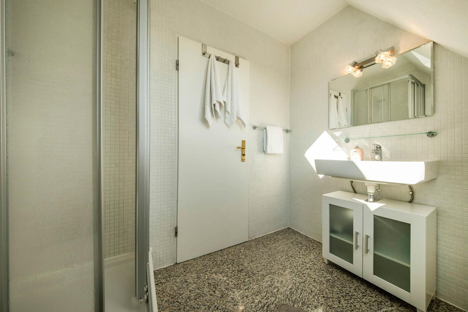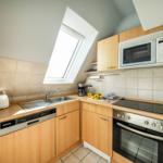 In dieser charmanten Ferienwohnung erwartet die Gäste ein gemütlicher Rückzugsort. Das einladende Schlafzimmer ist mit einem komfortablen Doppelbett ausgestattet, das für erholsame Nächte sorgt. Die offene Küche bietet modernes Kochvergnügen mit einem Elektro-/Gasherd, Mikrowelle, Kühlschrank, Kaffeemaschine, Toaster und Wasserkocher. Ein Esstisch lädt zum gemeinsamen Speisen ein. Das allergikerfreundliche Duschbad ist mit einem Haartrockner und einem Kosmetikspiegel ausgestattet. Im Wohnbereich stehen ein Sofa und ein Sessel bereit, um entspannte Abende vor dem TV zu genießen. Zusätzliche Annehmlichkeiten wie ein Parkplatz, Geschirrtücher, Geschirr und Besteck sowie eine Garderobe runden das Angebot ab. Die Wohnung ist ideal für Gäste, die Wert auf Komfort und eine hochwertige Ausstattung legen. Hochwertiges WLAN steht für eine optimale Internetverbindung ebenfalls zur Verfügung.