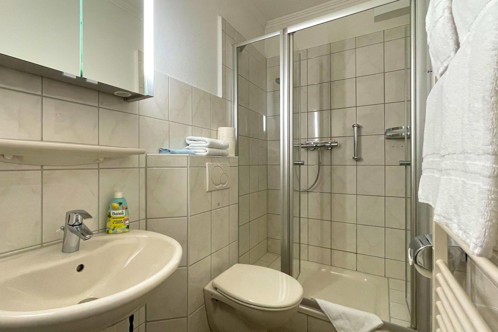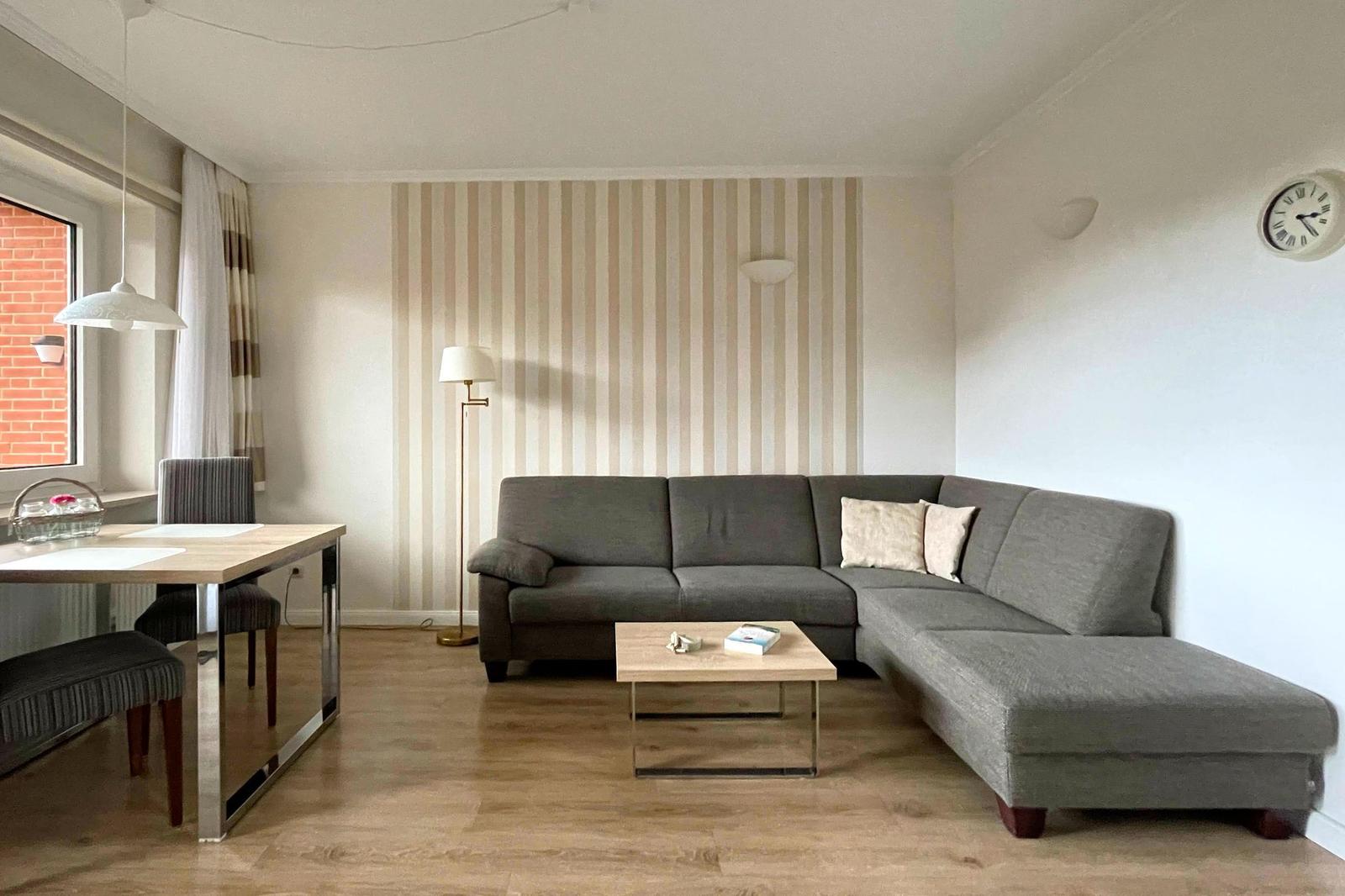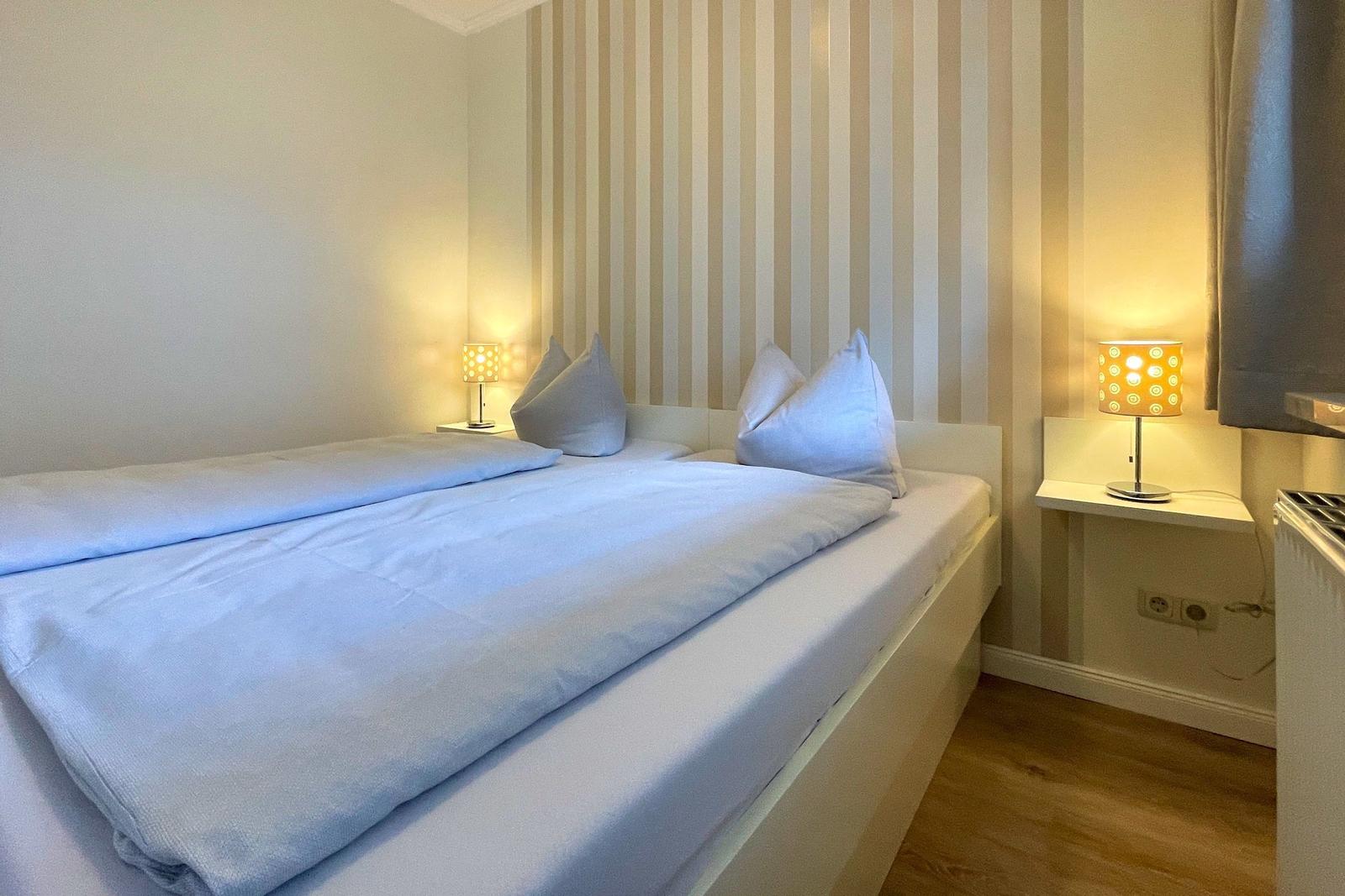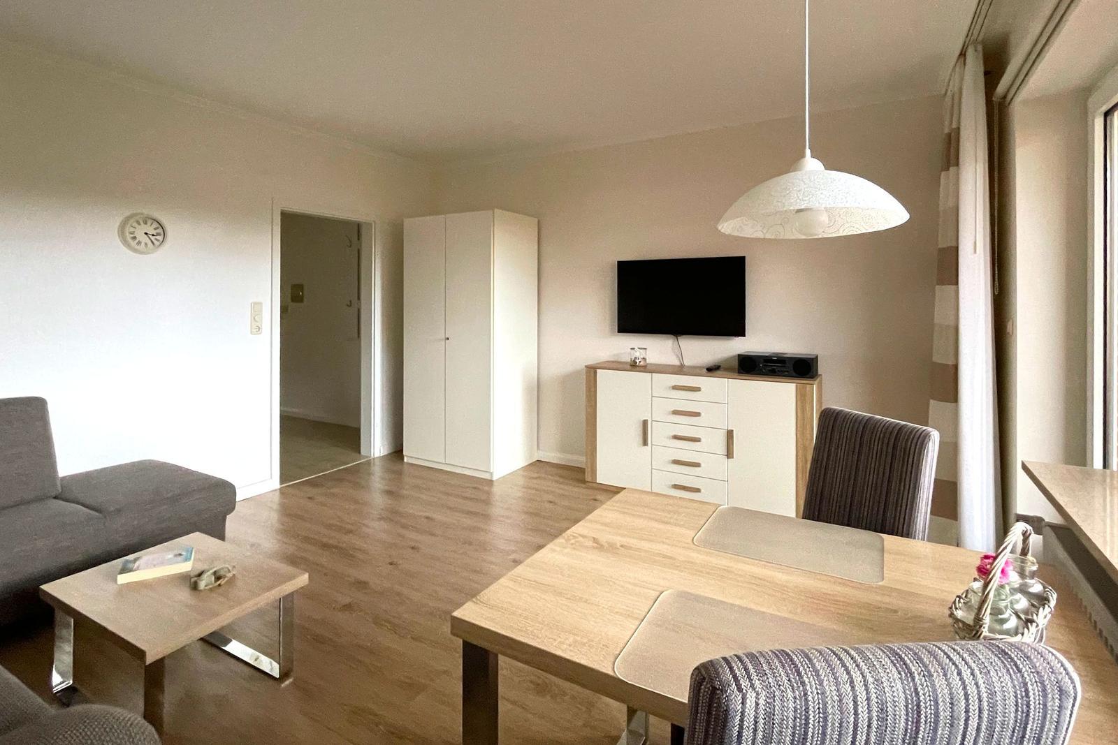 Die Ferienwohnung bietet ein modernes und komfortables Ambiente für einen erholsamen Aufenthalt. Sie verfügt über ein gemütliches Schlafzimmer mit einem Doppelbett, das für eine entspannte Nachtruhe sorgt. Die offene Küche ist mit einem Elektro-/Gasherd, einem Geschirrspüler, einem Kühlschrank, einer Kaffeemaschine, einem Wasserkocher, einem Toaster und einer Gefriermöglichkeit ausgestattet. Der Esstisch lädt zu geselligen Mahlzeiten ein. Das Badezimmer ist mit einer Dusche und einem Haartrockner ausgestattet. WLAN-Internet ist selbstverständlich vorhanden. Die Allergikergeeignete Wohnung verzichtet auf unnötige Textilien und sorgt für ein angenehmes Raumklima. Das Wohnzimmer bietet ein einladendes Sofa, einen TV und eine HiFi-Anlage für entspannte Abende. Ein Parkplatz steht zur Verfügung. Duschhandtücher und Geschirr sowie Besteck sind ebenfalls in der Wohnung vorhanden, um den Aufenthalt so angenehm wie möglich zu gestalten.