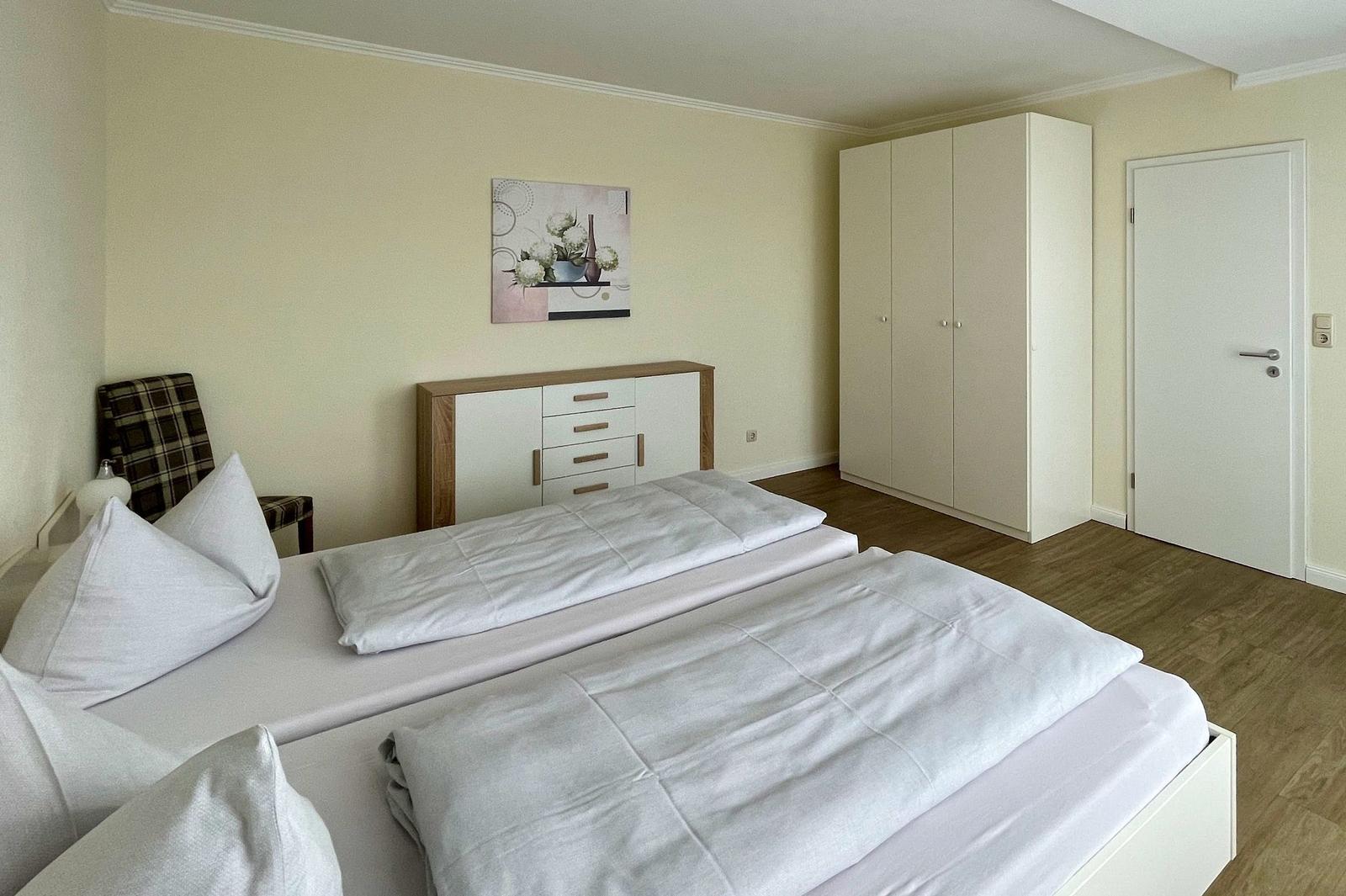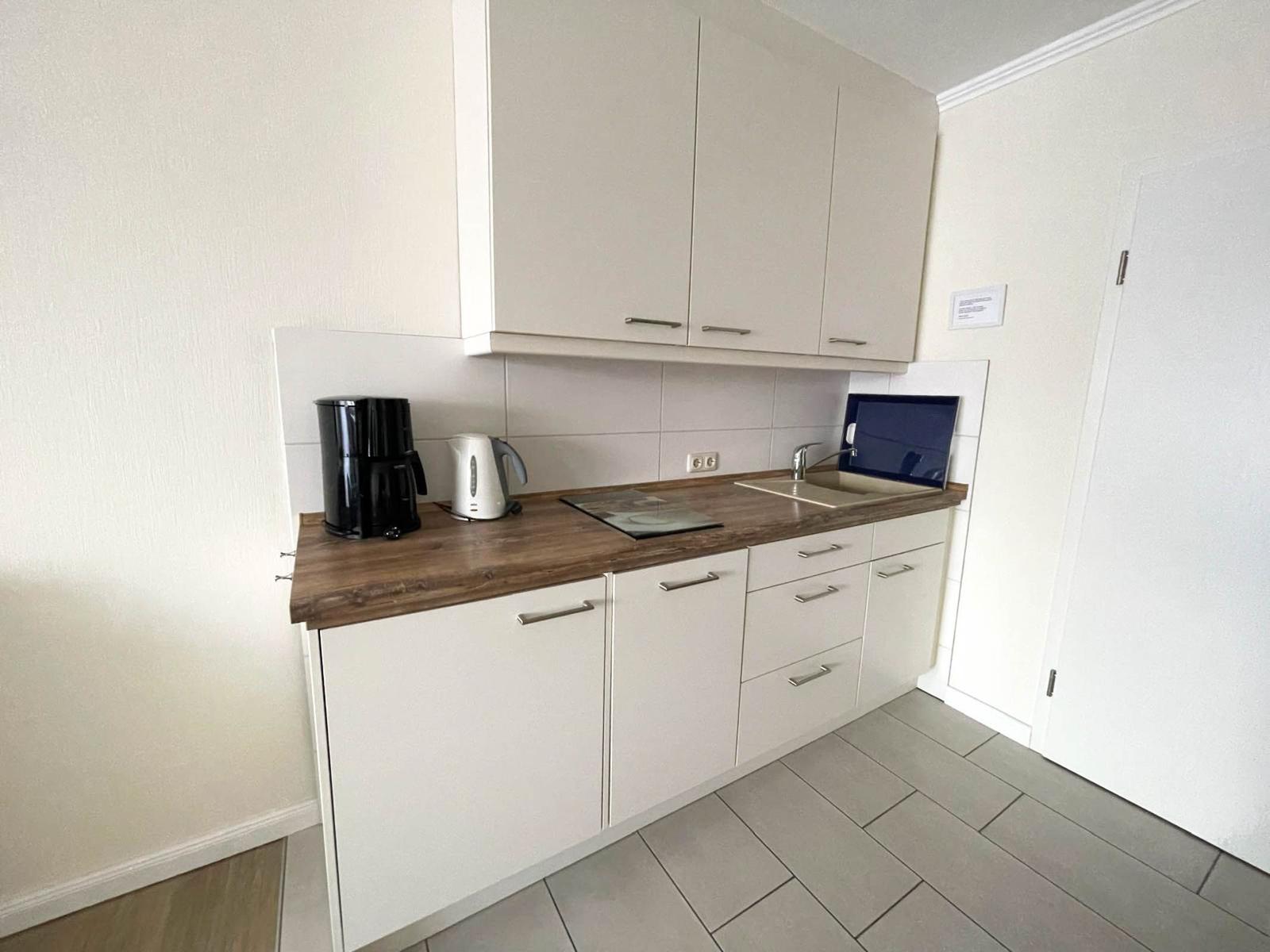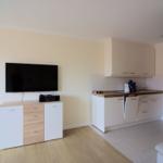 Die Ferienwohnung bietet eine komfortable und moderne Ausstattung, die jedem Aufenthalt gerecht wird. Sie verfügt über ein gemütliches Schlafzimmer mit einem Doppelbett, das für eine erholsame Nachtruhe sorgt. Die offene Küche ist mit einem Geschirrspüler, einem Elektro-/Gasherd, einem Kühlschrank, einer Kaffeemaschine, einem Toaster und einem Wasserkocher ausgestattet, was das Kochen und die Zubereitung von Mahlzeiten zum Vergnügen macht.